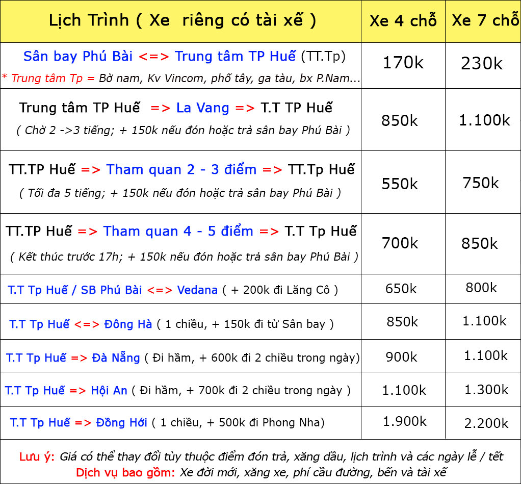 - Quý Khách vui lòng tìm hiểu giá cả, loại xe và các điểm tham quan trọng bài viết